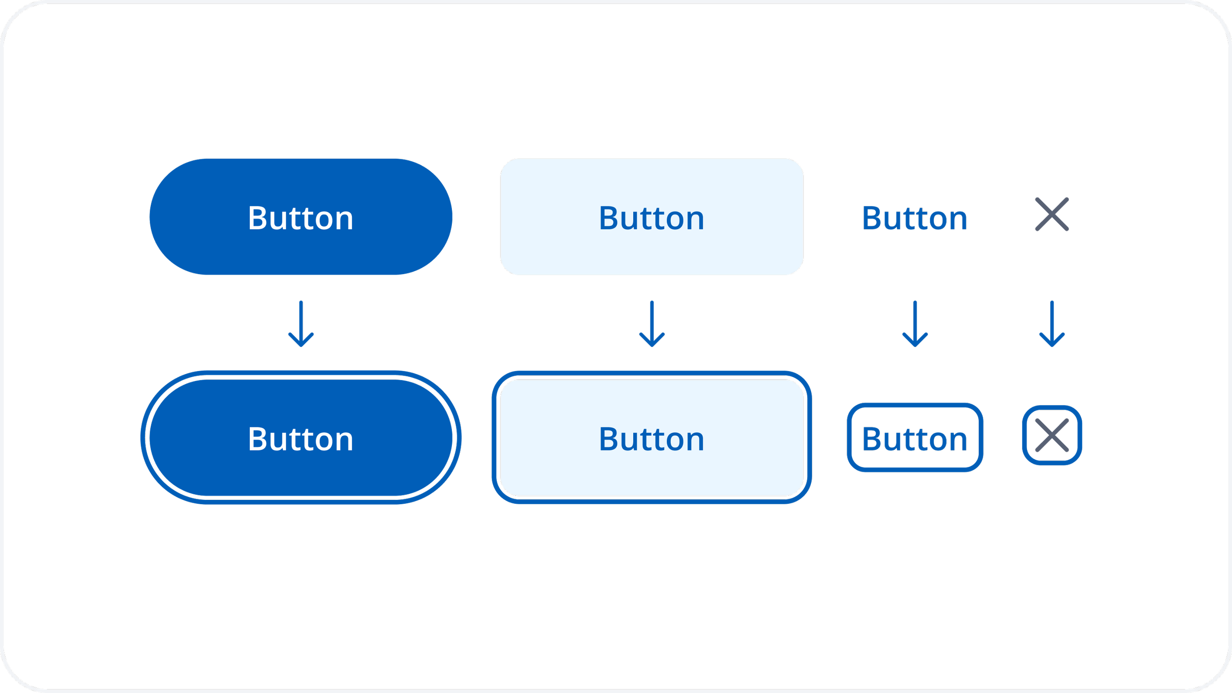 When designing focus states for keyboard navigation, I realised I would need to adjust the focus outline’s border radius to match the component’s shape, which involved creating new border radius tokens using Tokens Studio.